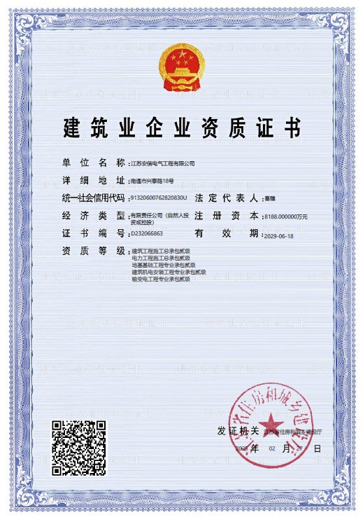 在創(chuàng)業(yè)之初,公司就堅(jiān)持高起點(diǎn)的戰(zhàn)略思路,廣納賢才,集聚行業(yè)精英,創(chuàng)新發(fā)展,做優(yōu)企業(yè)品牌。現(xiàn)已取得:承裝二級(jí)、承修二級(jí)、承試二級(jí),電力工程施工總承包二級(jí),輸變電工程專業(yè)承包二級(jí),建筑工程施工總承包二級(jí),建筑機(jī)電安裝專業(yè)承包二級(jí),地基基礎(chǔ)專業(yè)承包二級(jí)資質(zhì)證書,并通過了質(zhì)量、環(huán)境、職業(yè)健康和安全管理體系認(rèn)證,確保各項(xiàng)工作有序管控。